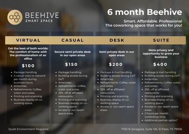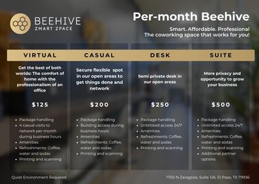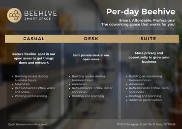 Whether you’re looking for a coworking space near Downtown El Paso, East Side, or West Side, you can find a location that suits your needs. Many spaces offer daily, weekly, or monthly office rentals, giving you complete flexibility.